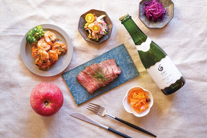 - (1)UMIシードル 2,200円 / (2)YAMAシードル 2,400円 / (3)KAZEシードルdry 2,200円 / (4)KAZEシードルsweet 2,400円